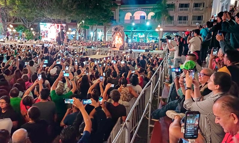 Una hora después, a las 22:00 horas, sonaron las primeras notas musicales del llamado Rey del Baile, Nelson Kanzela que llenó de ambiente el zócalo con melodías como “cartoncito de cerveza”, #A ritmo de Violín”, “Chabela”, y el famoso “Oso Polar”.
