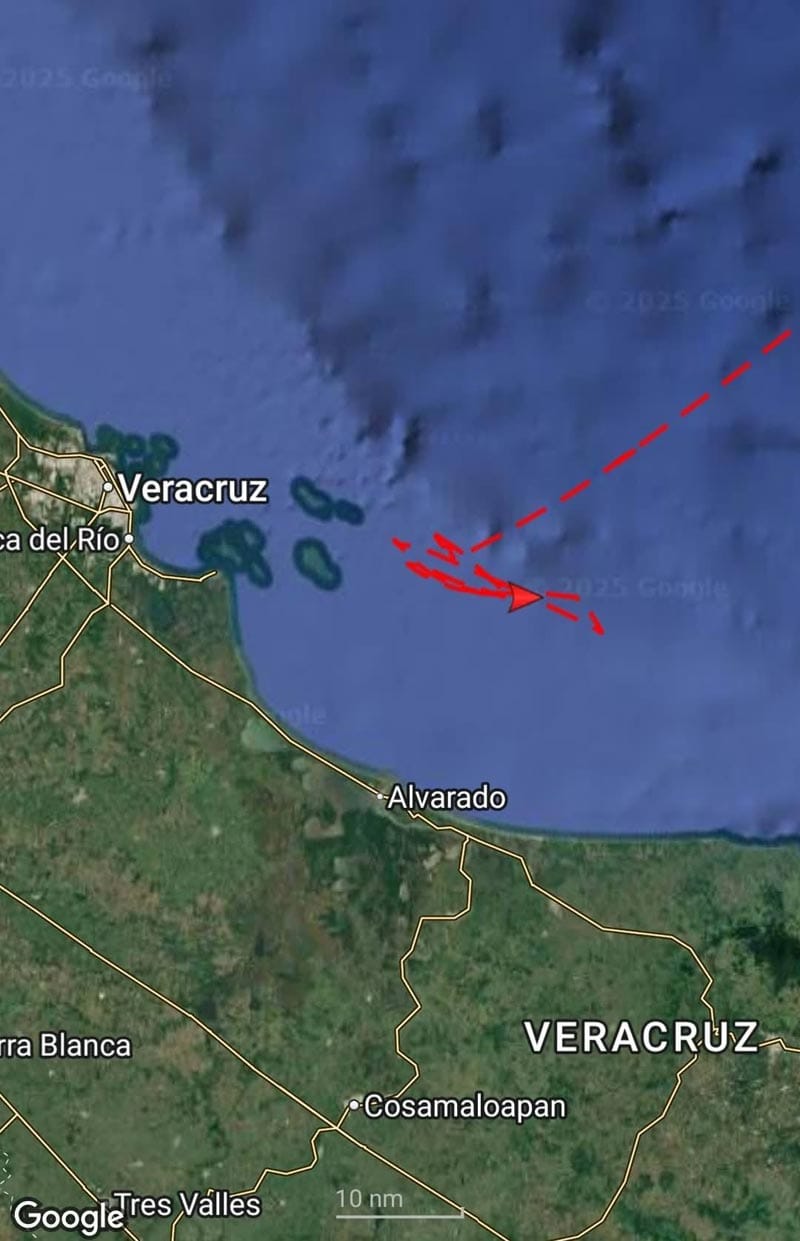 El Cuauhtémoc se encuentra en este momento en mar abierto cerca del sistema Parque Arrecifal Veracruzano.