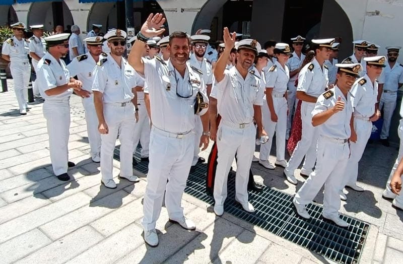 *Oficiales y guardiamarinas del Juan Sebastían de Elcano salieron desde el muelle de la "T", hasta el Círculo Español Mercantil