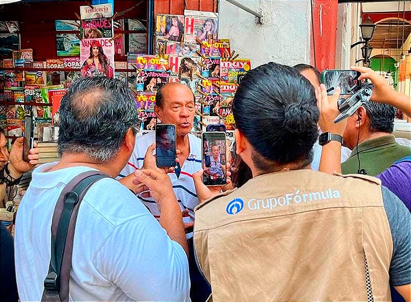 Conmovido visiblemente, se le quiebra la voz a momentos y hasta un par de lágrimas por la emoción, la marimba le cantó Las Mañanitas, recibió porras y no podía faltar el tema Veracruz de Agustín Lara, en este local de periódicos que es considerado parte del centro histórico y del inmobiliario municipal.
