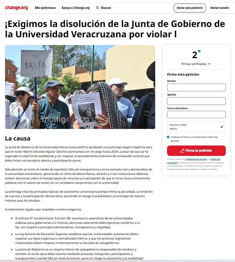 Vestidos de negro, estudiantes y académicos de la Universidad Veracruzana exigieron a la Junta de Gobierno revocar la prórroga otorgada a Martín Aguilar Sánchez, al considerar que fue impuesta sin legalidad ni consenso.