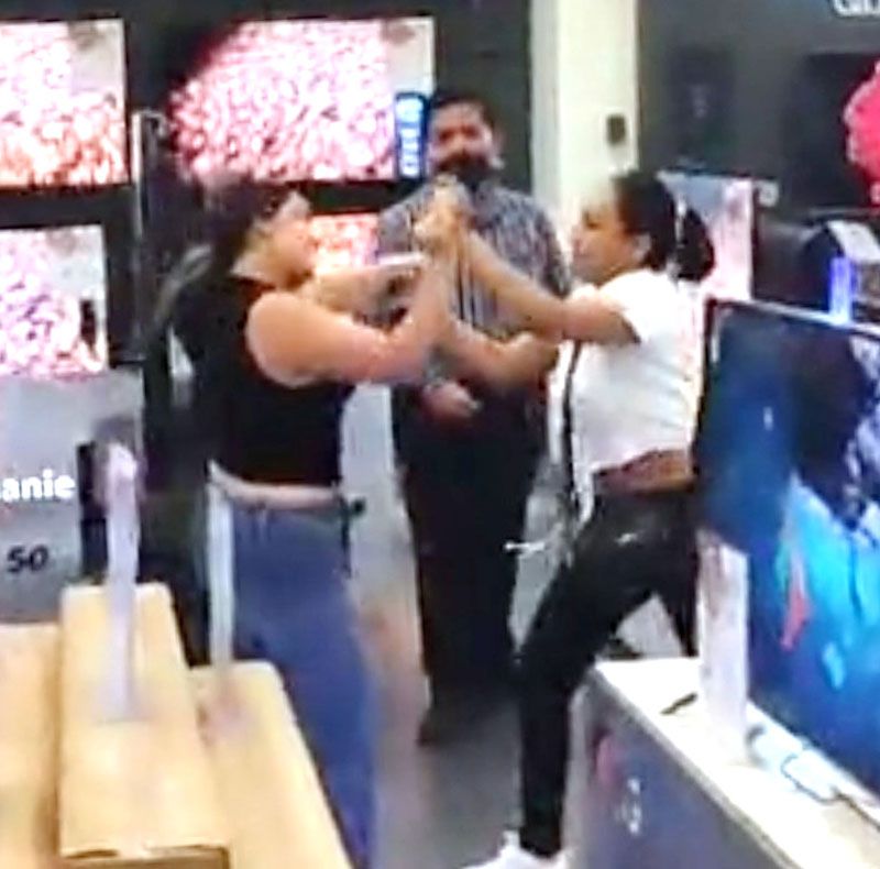Para ese entonces, en la tienda era un escándalo, en las imágenes puede verse cómo los clientes voltean a ver todo lo que estaba aconteciendo, y es cuando una de las empleadas interviene para pedirles mesura y calma.