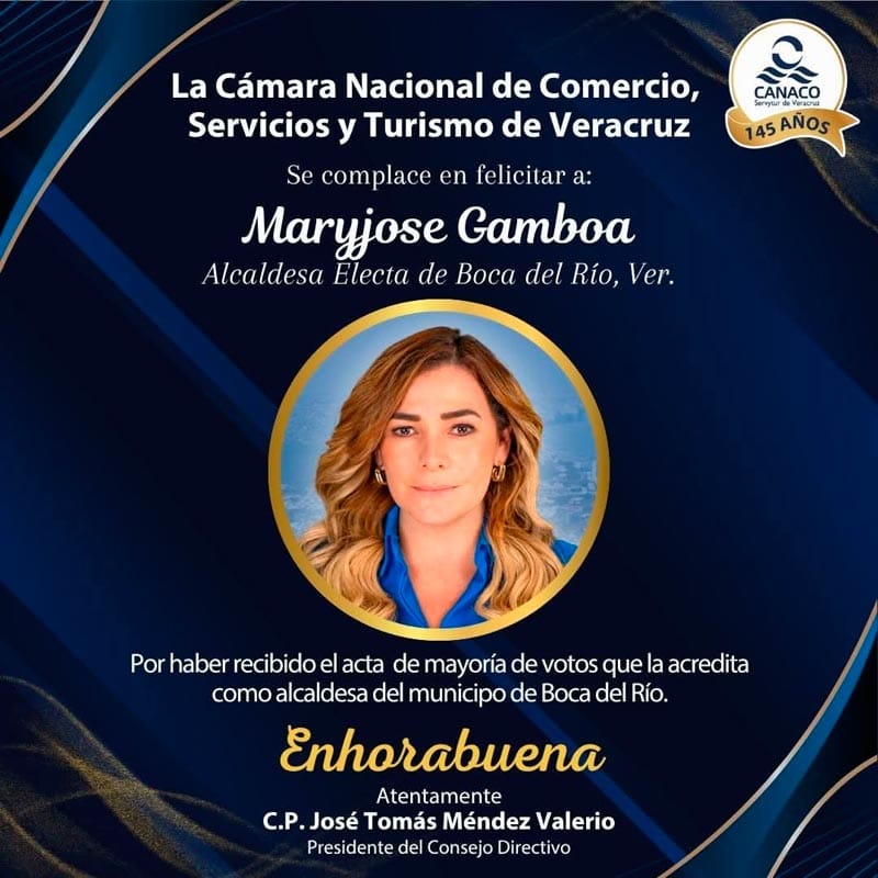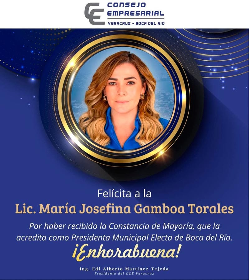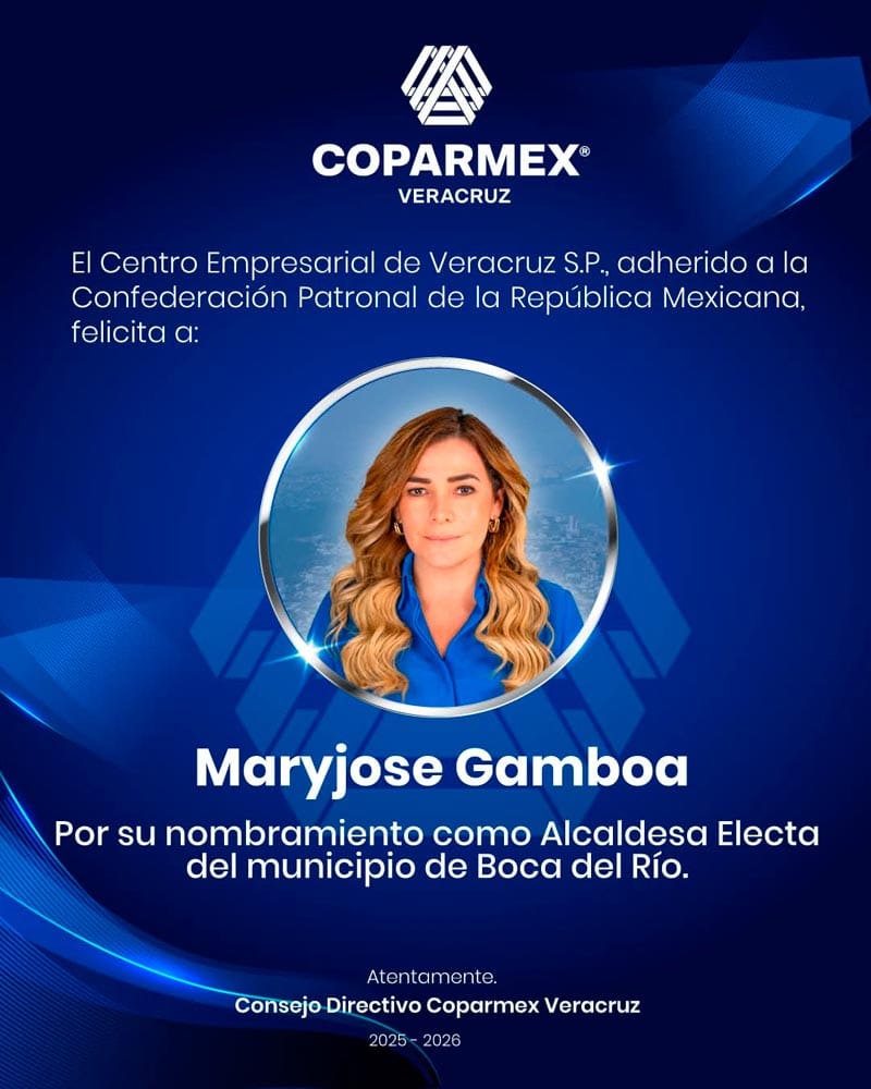 Tal es el caso de la Cámara Nacional de Comercio de Veracruz (Canaco); el Consejo Coordinador Empresarial (CCE), y Coparmex Veracruz, quienes desearon el mayor de los éxitos a quien gobernará el municipio boqueño por el periodo 2025-2029.