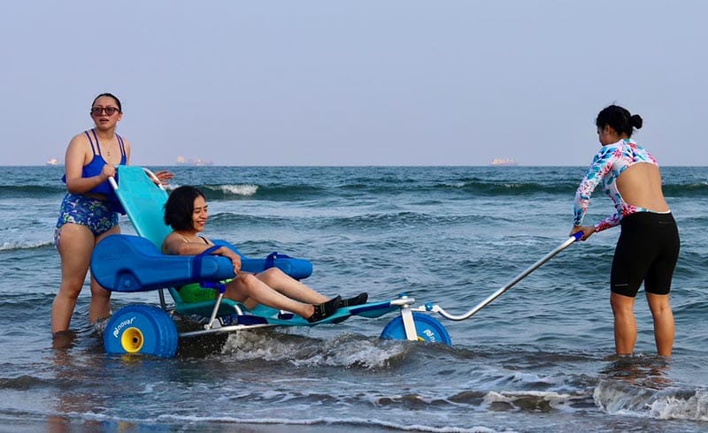 Lo que hizo el DIF fue colocar una rampa en el Balneario Mocambo por lo que esta playa podría ser la primera en Veracruz con estas condiciones, por difícil de creer que parezca o por sencillo que pudiera ser, también habilitaron unos carritos tipo triciclos que pueden ser llevados fácilmente por terceros.