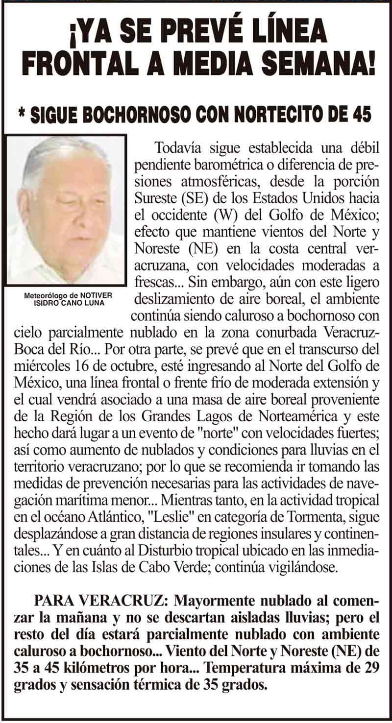 PRIMERA ¡YA SE PREVÉ LÍNEA FRONTAL A MEDIA SEMANA! - *SIGUE BOCHORNOSO CON NORTECITO DE 45 13 octubre 2024 Más Noticias ¡YA HAY TERNA! - RAÚL PEIMBERT EN LA LISTA ¡“CEMENTERIO”! - DE ULÚAS ¡INAUGURA PATY OTRA CALLE! ¡NO LE CREYERON! - Y LO BUSCAN NOTI-MEME | - ECOS DEL INFORME! ¡VERÓNICA VA CON NAHLE! - Y AL CONGRESO ¡“FAST TRACK”! - *Mientras el Mariner salía y entraba de Pajaritos en Coatzacoalcos ¡OPERATIVO LUPE-REYES! ¡MANDAN LA BILLETIZA! - *Corea manda 150 mil dólares ¡CRISTINA GANA LA ELECCIÓN!