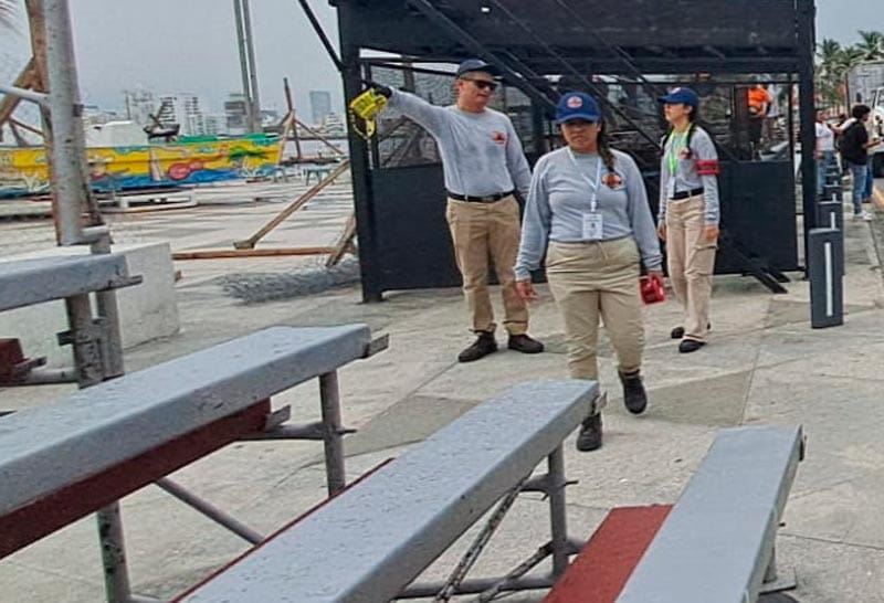 La mañana de este lunes, personal de Protección Civil del Estado, municipal y trabajadores de la empresa encargada de la colocación de las gradas para carnaval, iniciaron la revisión de las estructuras, a fin de poder verificar que no haya riesgos para la población que asista a los paseos.