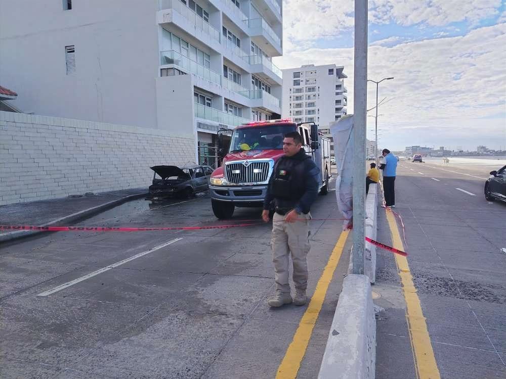La unidad se desplazaba sobre el bulevar Manuel Ávila Camacho cuando presentó una falla mecánica que provocó el incendio, el cual se propagó rápidamente hasta envolver por completo el vehículo debido a las rachas de viento que azotan la costera.