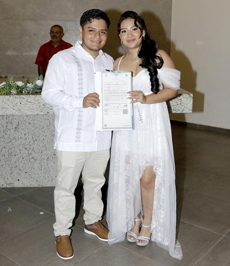 Muy ilusionados fueron captamos por nuestra lente de NOTIVER la pareja de enamorados formados por Abigail Hernández Reyes y Carlos Eusebio Romero Tadeo, quienes en días pasados llegaron hasta la sala matrimonial del Registro Civil para unir sus vidas en legítimo matrimonio, en ese inolvidable momento estuvieron acompañados por sus respectivos padres, así como de familiares y amigos quienes estuvieron muy atentos durante el casamiento y fueron testigos de este bonito acto de amor.
