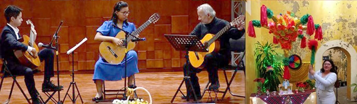 También en este recinto, se contó con la participación de niños y jóvenes que integran el Coro Cantiriletras y el Dueto Infantil de Guitarras, bajo la dirección del profesor Jesús F. Peña Rodríguez, quienes interpretaron melodías clásicas que forman parte de las festividades decembrinas.