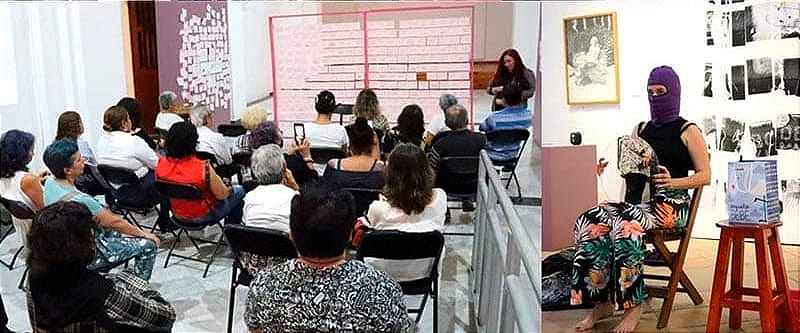 Para despedir la muestra “Hija de su madre. Una exposición de Mónica Mayer”, en el Exconvento Betlehemita se realizó una jornada multidisciplinaria que incluyó un recorrido visual a través de la maternidad, impartido por Gladys Villegas; la artista plástica Wendy López participó con la actividad interactiva “Diálogos del yo”, basada en la selección aleatoria de algunas respuestas al azar del tendedero de esta exposición y Makame Orozco, creadora escénica, presentó “El útero que materno”, performance en el que compartió con el público su experiencia materna.