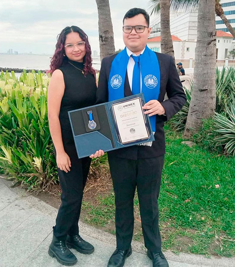 Con gran satisfacción, el joven Adrián Guzmán Gutiérrez alcanzó una importante meta académica al titularse como Licenciado en Administración de Empresas por la Universidad Mexicana (UNIMEX).