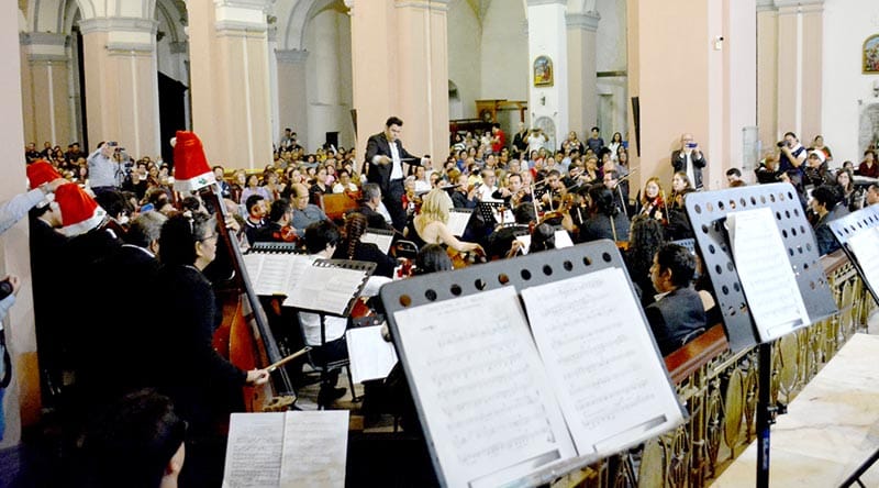 En la Catedral Nuestra Señora de la Asunción, la orquesta bajo la batuta de Moisés Arango Ferrer y el coro que dirige Daniel Martínez Isunza, ofrecieron un recital que incluyó Viaje en Trineo, El Cascanueces, Chacona y Rapsodia Navideña, piezas de Mozart, Tchaikovsky y Carlos Chávez.