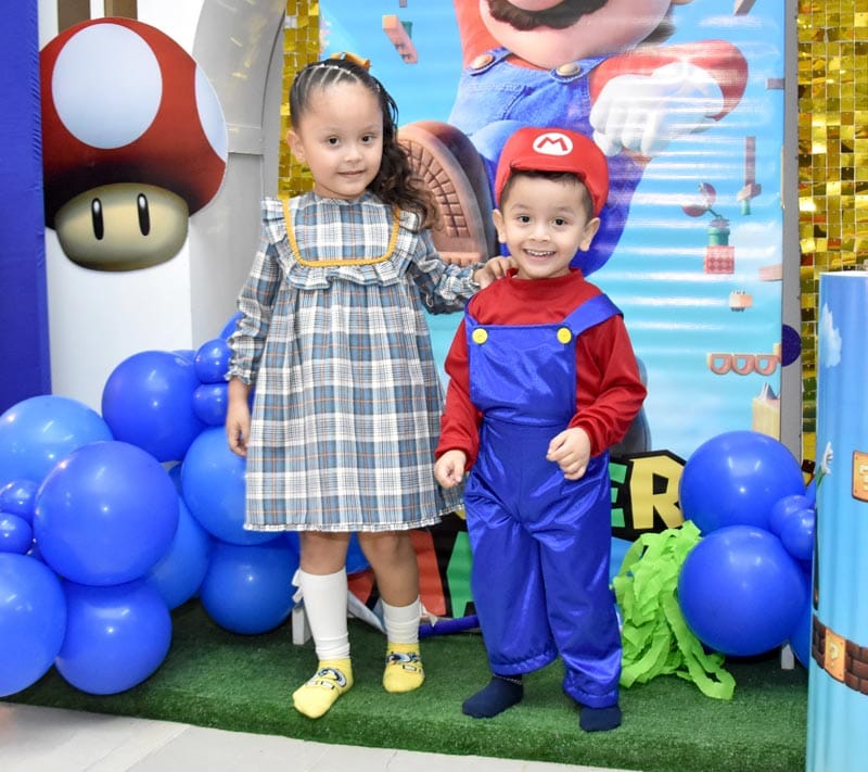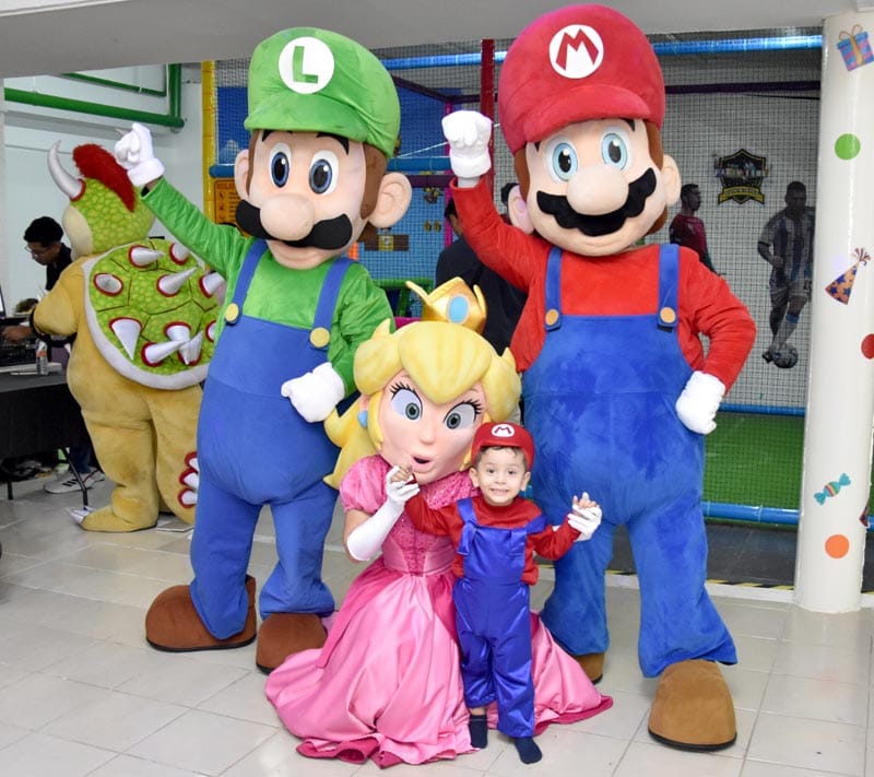 Como sorpresa especial para los festejados y sus invitados llegaron a saludarlos Mario Bros, Luigi, la princesa Peach y Bowser con los que cantaron, bailaron y jugaron por horas.