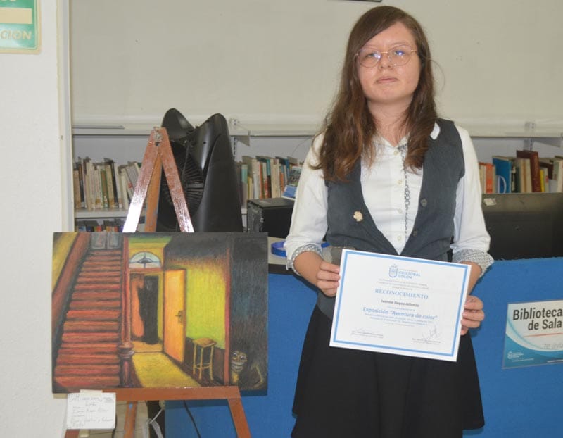 La biblioteca Dr. y P. Segismundo Balagué fue el lugar donde alumnos universitarios presentaron la exposición pictórica colectiva “Aventura de Color”.