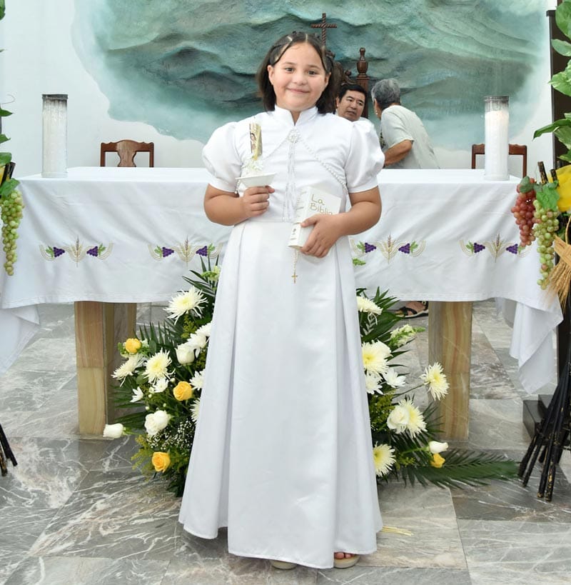 La iglesia Stella Maris abrió sus puertas a la pequeña Andrea Eitana Barran Tejeda, quien llegó hasta el altar de nuestro creador para recibir por primera vez el Cuerpo y la Sangre de Cristo, fue acompañada en todo momento por sus padres Gladys Tejeda Bravo y Andres Barran Muñoz, así como sus padrinos Roberto Barran Muñoz y Alma Guadalupe Saldaña Sánchez, los cuales estuvieron muy atentos a la ceremonia y fueron testigos de ese bonito acto de fe y amor.