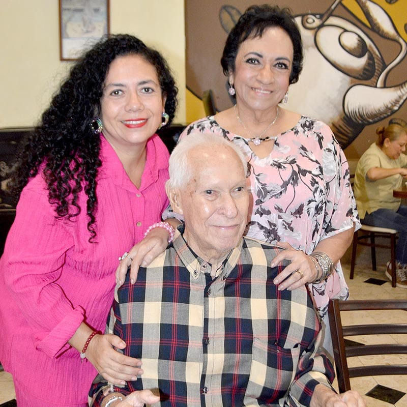 Las Mañanitas le fueron cantadas a Toño, ante su pastel de cumpleaños, donde apagó su velita #90, para después tomarse la foto para la posteridad con las presentes.