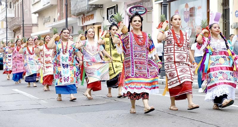 Ya en la Plaza de Armas, ante decenas de personas que se reunieron para disfrutar de las danzas, el ballet Alma Jarocha presentó Chinas Oaxaqueñas, Diablos de Santiago Llano Grande, Flor de Piña, folklore de San Luis Potosí, Querétaro, Sinaloa, Nuevo León, Morelos, Cumbias de Puebla, Huasteca Veracruzana, cerrando con son jarocho, acompañado por música en vivo del Trío Chalchihuecan, de los hermanos Ochoa.