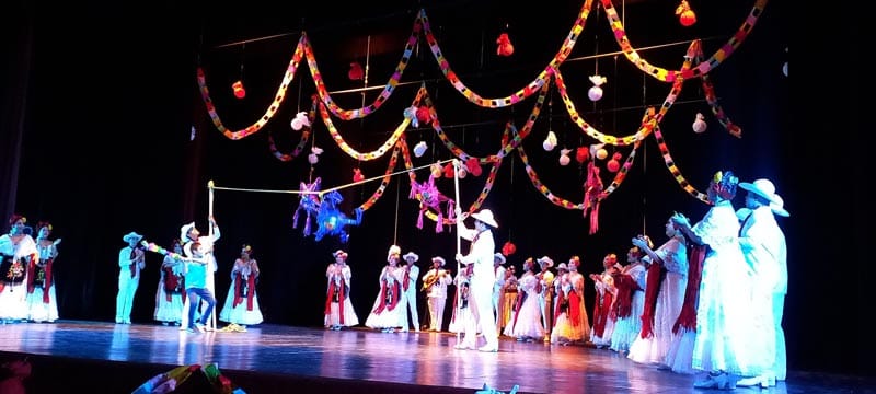 Presentando las tradiciones mexicanas y veracruzanas de la época decembrina como La Rama, La Posada, La Piñata y El Viejo, el ballet que dirige el maestro Daniel Del Valle Hernández deleitó al público con sones jarochos como El Colás, El Canelo, El Huateque, El Gavilancito, El Coco y El Pájaro Carpintero, acompañados musicalmente por Nematatlín Jarocho, bajo la dirección de Salvador Peña Cadeza.