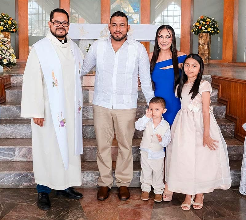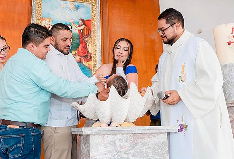 Junto a sus papás, Viridiana Basurto de Quintal y Cristian Jair Quintal Sosa, el pequeño llegó a la iglesia de San Pedro y San Pablo, en donde Mario Osorio González se comprometió fungir como su guía espiritual.