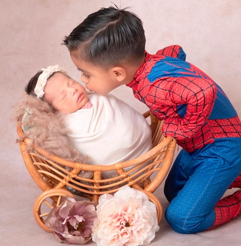 En las imágenes también participó Valentino, orgulloso hermanito mayor, quien se mostró cariñoso y protector con la nueva integrante de la familia.