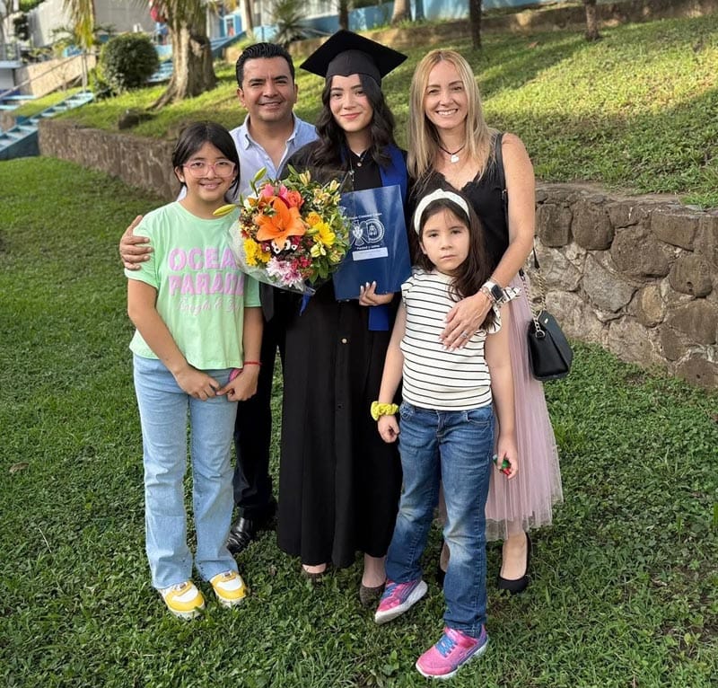 Durante toda la ceremonia, Camila estuvo muy bien acompañada por sus queridos padres, Rafael y Cecilia Gaona de Martínez, quienes no ocultaron su orgullo, así como por sus entrañables hermanitas Renata y Ana Sofía, que compartieron con gran alegría este importante logro familiar.