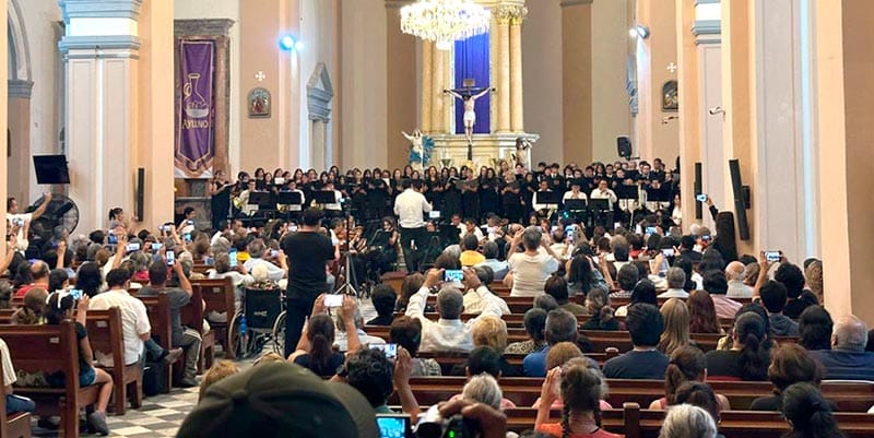 En la Catedral de Nuestra Señora de la Asunción, se realizó el concierto con la Orquesta Sinfónica ´Daniel Ayala´, bajo la batuta de Moisés Arango Ferrer; el Coro con dirección de Daniel Martínez Insunza, agrupaciones de la Escuela Municipal de Bellas Artes de Veracruz, que dirige la maestra Lucía Ortiz Beltrán.
