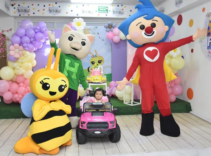 Plim Plim y sus amigos llegaron para la diversión de los pequeños, y partir con ellos el pastel para la bella Keilany, quien con la ayuda de su hermana Thabata apagaron su vela No. 1.