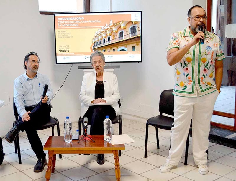 En el marco de la celebración por el 26 aniversario de Casa Principal Centro Cultural, se desarrolló un interesante conversatorio en el que participaron Marcela Prado Revuelta, primera directora y Daniel Domínguez Cuenca, tercer titular; moderado por César Segura Gómez, actual jefe del espacio.