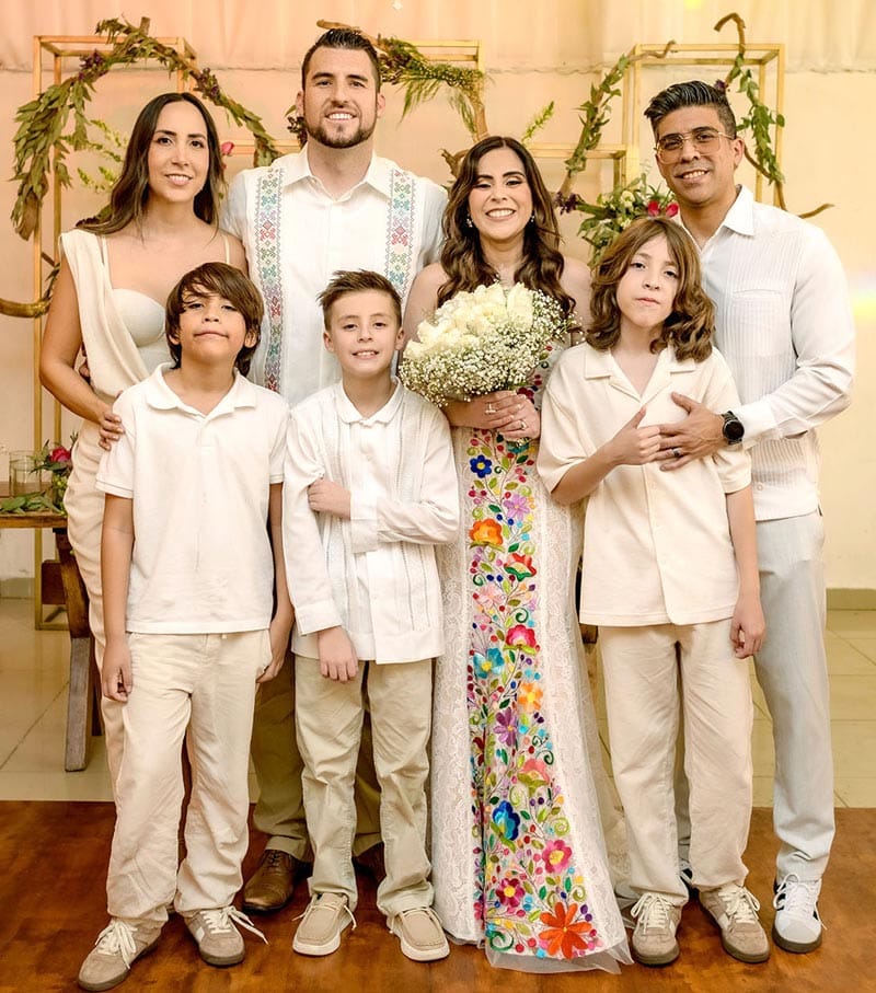 En primera fila estuvieron su hijo Liam, testigo del amor que une a sus padres; así como los orgullosos padres de Clau, Miguel Ángel Domínguez y Thelma Trápaga, y los padres de Chase, Robert y Cristy Jones, quienes compartieron la emoción y la alegría de la pareja.