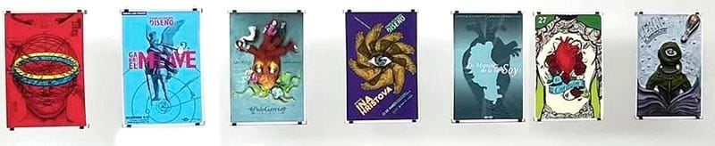 Una constante de sus carteles es el uso del corazón, elemento recurrente porque para el artista, hay que poner el corazón en todo lo que hace.