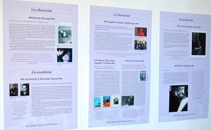 En esta muestra se da cuenta de algunas de las mujeres exiliadas que han sido actoras sociales y políticas activas y protagónicas de este exilio; muchas se dedicaron al hogar, fueron oficinistas, mecanógrafas, taquimecanógrafas, modistas, costureras, planchadoras, estudiantes, profesoras, catedráticas, comadronas, enfermeras, fotógrafas, obreras y cocineras.