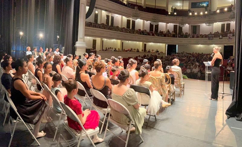 Con más de 100 bailarines en escena, luego de dos intensas jornadas de clases magistrales, se desarrolló la gala de clausura en el teatro Francisco Javier Clavijero, dedicada a México y sus raíces culturales, con coreografías montadas por los maestros en las sesiones de clases durante los días del curso.