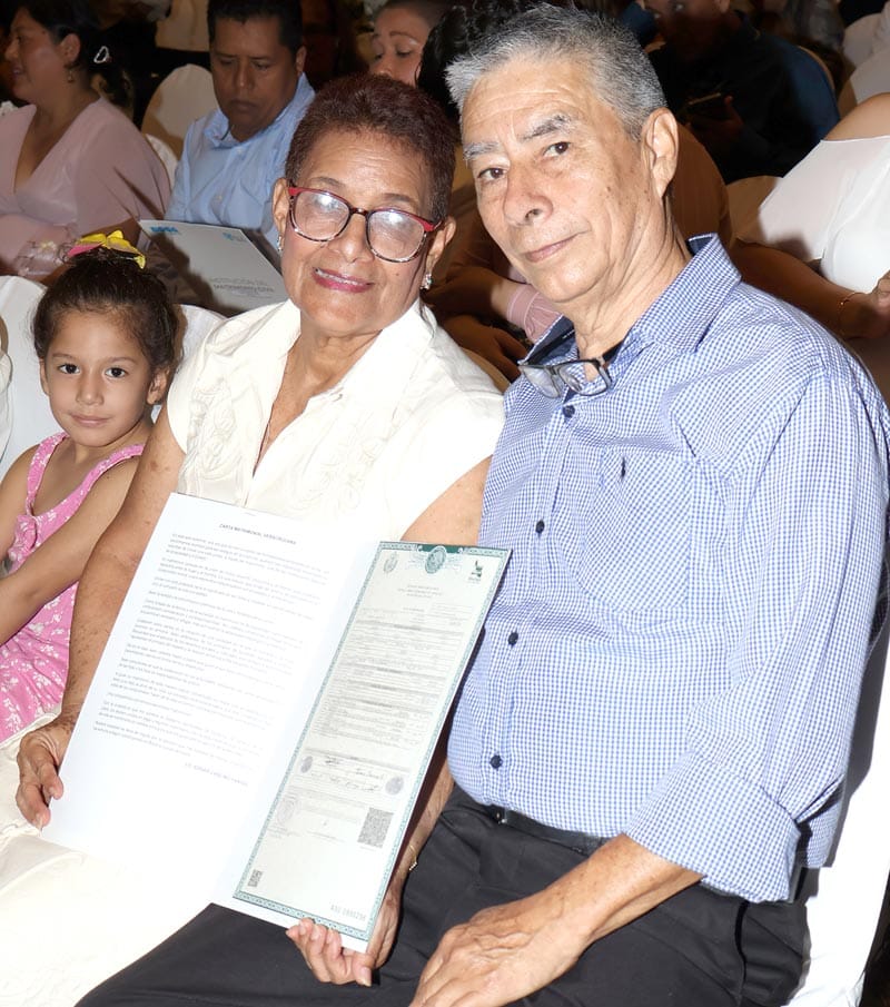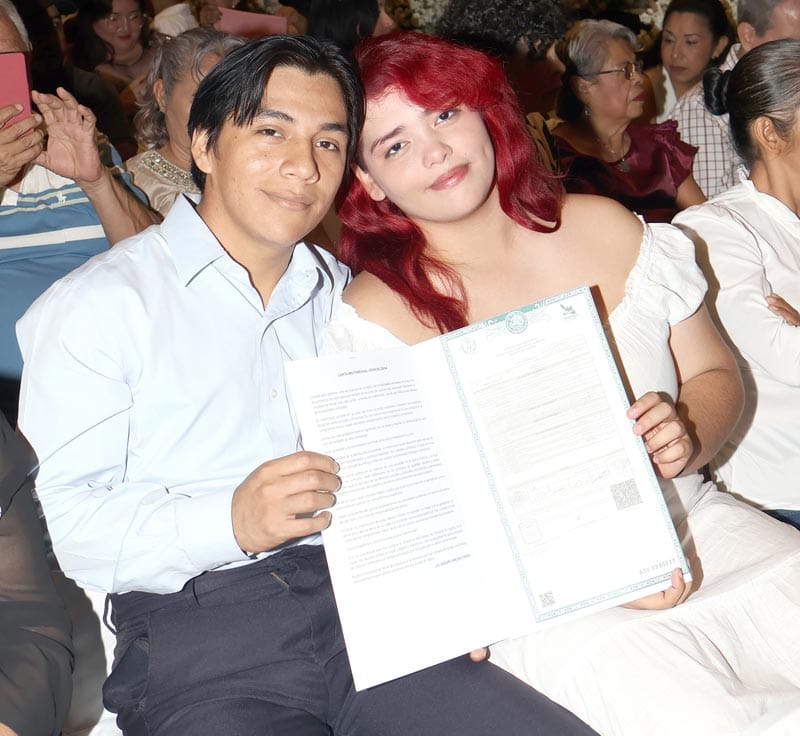 El evento contó con la presencia de la alcaldesa Maryjose Gamboa, quien acompañó a los contrayentes en este paso trascendental.
