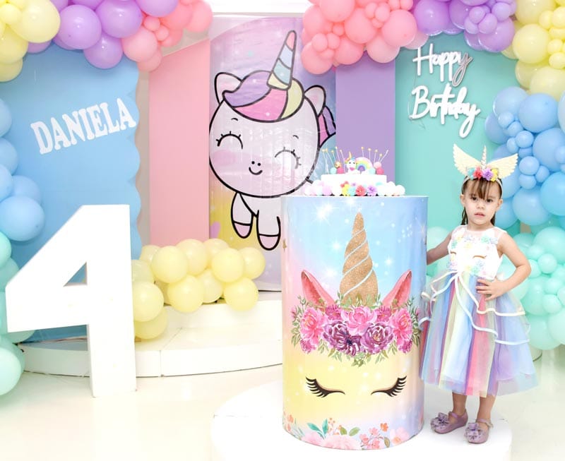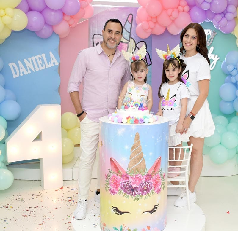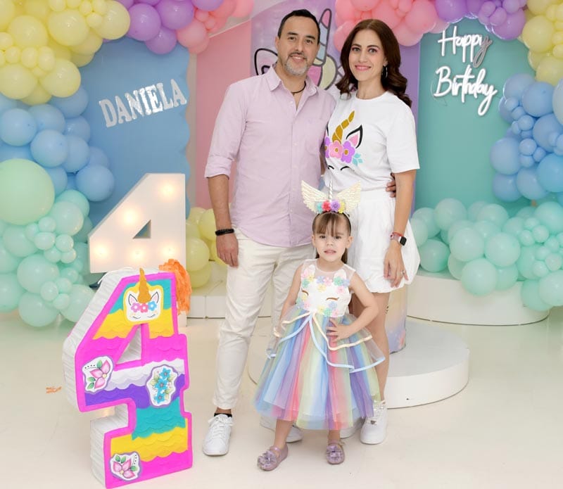Un auténtico y vibrante arcoíris envolvió el salón para celebrar el cuarto aniversario de la encantadora Daniela Franco Carvajal.