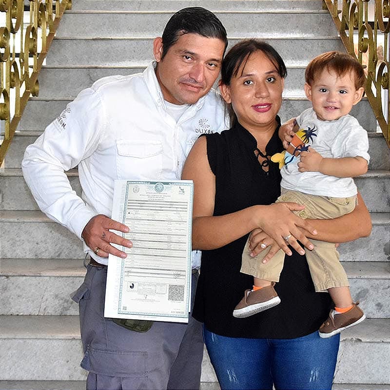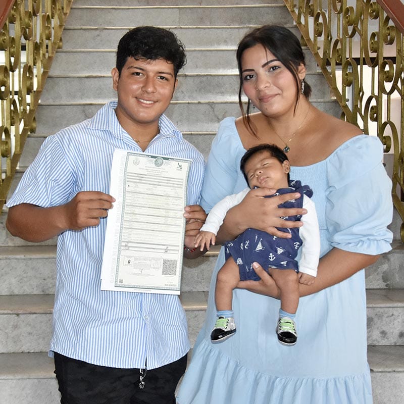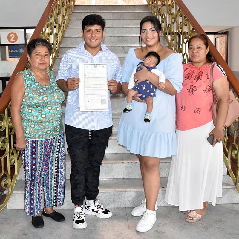El pequeño Geovanny Hernández Morales fue registrado por sus padres, Kenia Morales Ortiz y Geovanny Hernández Varela. Geovanny acompañado de sus padres, su abuelita María Elena Huerta Cabrera y su tía Anabel Varela Huerta.