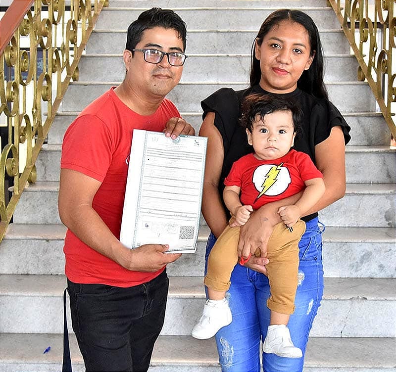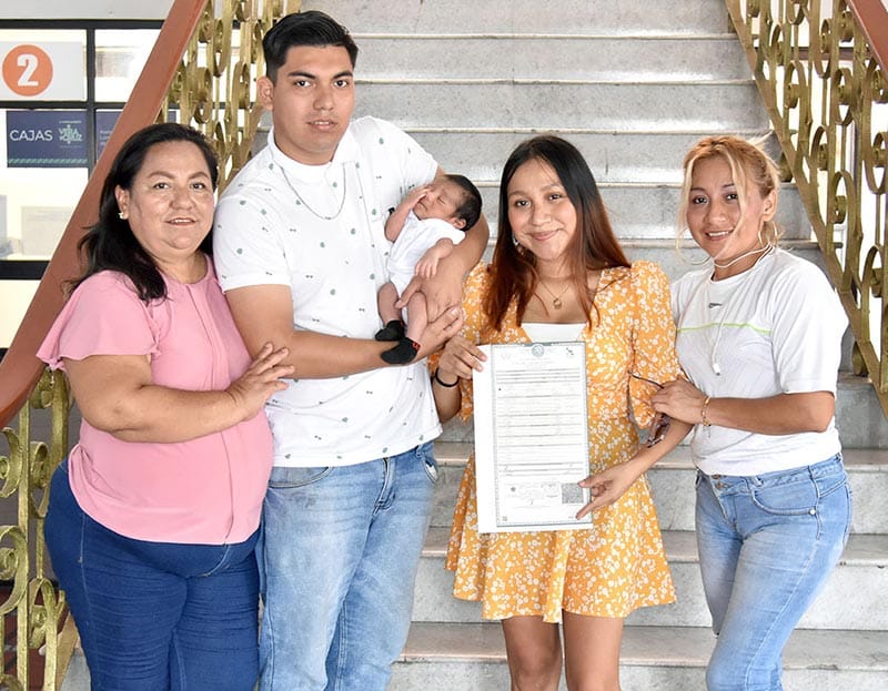 Muy contento lució el pequeño Mael Santiago Hernández Montalvo, el día que sus padres Sury Saday Montalvo García y Martín Uriel Hernández Reyes lo asentaron en el Registro Civil de Veracruz. El recién nacido con sus papis y sus abuelitas, Martha Reyes Jiménez e Irene García de Jesús