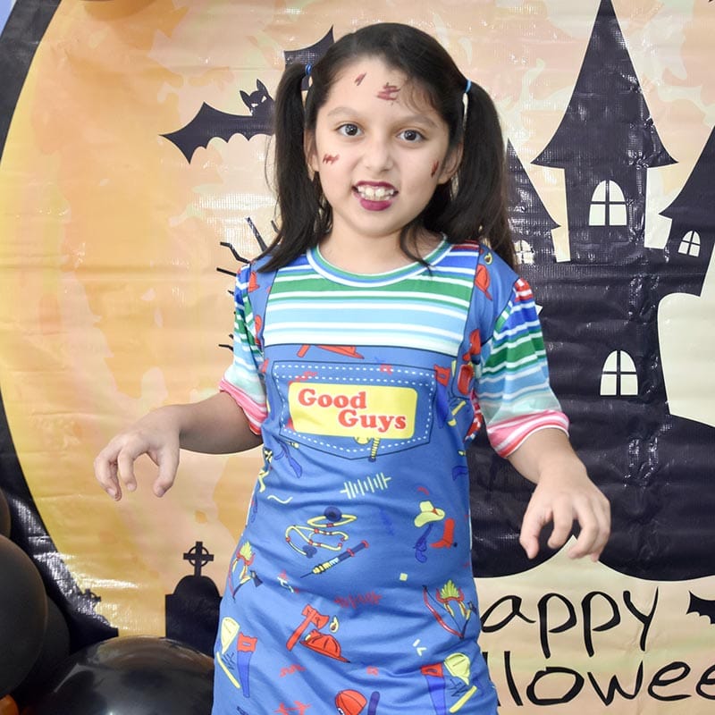 Disfraces, maquillaje de fantasía y espanto lucieron los pequeñines, mientras recorrían el lugar comiendo golosinas.