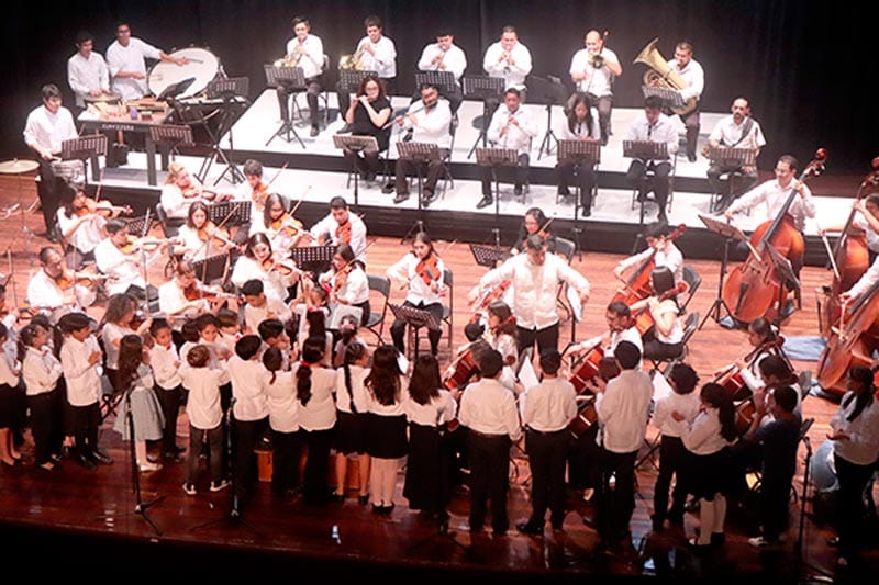 El programa abrió con “Mi Orquestita”: Himno a la Alegría/L. V. Beethoven, Canon D/Johann Pachelbel, Marcha Turca (fragmento)/ L.V. Beethoven y Barbero de Sevilla(fragmento)/Gioachino Rossini, siendo responsables los maestros Nubia A. Acevedo López y Miguel Ángel Gutiérrez.