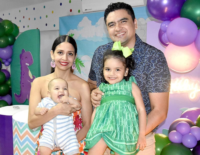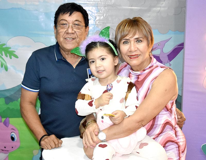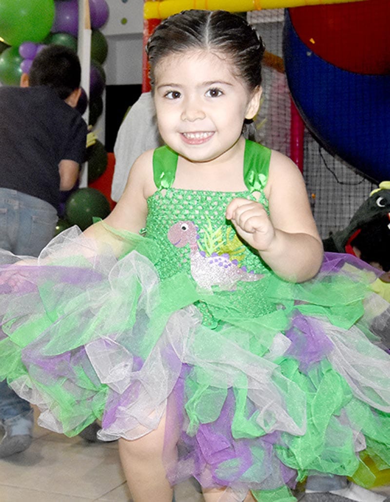 Un par de Dinosaurios y verde vegetación de enormes hojas para recrear tiempos prehispánicos, era lo que adornaban la mesa principal del cumpleaños #3 de la hermosa Emma Diez Gutiérrez Andrade, quien estuvo acompañada de su familia y amiguitos.
