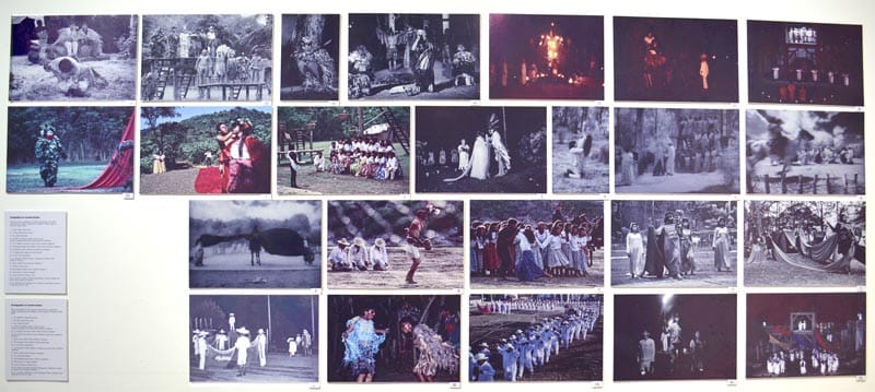 Máscaras, telones, utilería y vestuario de material orgánico; huipiles de diferentes regiones de México que se han utilizado como vestuario de teatro en el LTCI; y dos videos del Carnaval Indígena y el Árbol de la Vida en el zócalo de la CDMX, en 2005.