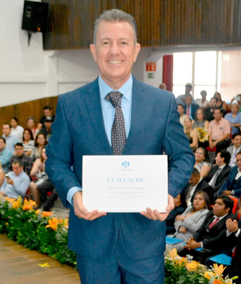 Cumpliendo una meta más en su formación académica, José Enrique Varela Cataneo se graduó de la Maestría en Derecho Fiscal, recibiendo además el reconocimiento especial Cum Laude, por haber logrado un promedio final de 9.6, en sus estudios de posgrado.