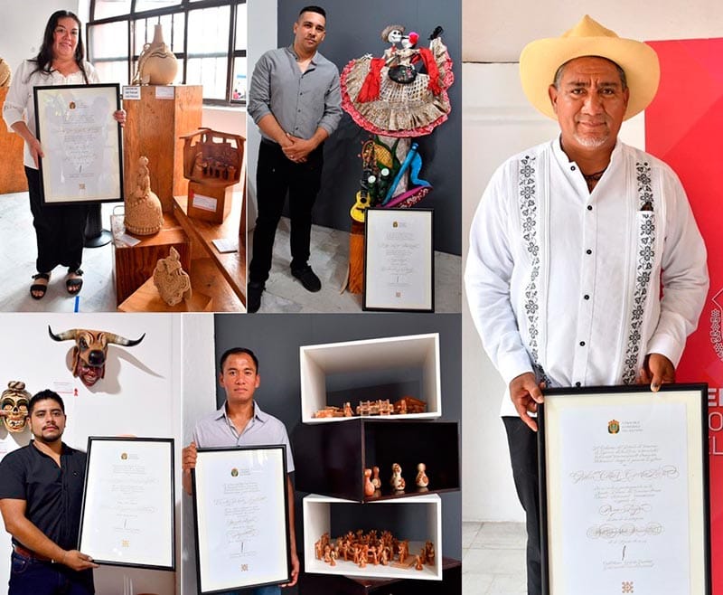 En textiles ganaron: Diana Jiménez Torres (Refajo tradicional de rescate), Jaime González Torres (Rescatando la identidad) y María Martínez Cruz (Chachaxochitl-flor de pitaya); en alfarería y cerámica: Carmen Gutiérrez Flores (Tinaja para agua), María Eva García Melchor (El recuerdo de mi abuela) y Ana Laura Xitlama Tocohua (Apastli); en cestería y fibras vegetales: Nahúm Hernández Sarmiento (Sombreros tancoqueros finos), Silvia del Ángel Antonio (Canasta dulcera en forma de flor), Isabel Antonio Pablo (Bolsa cuadrada); en talla en madera y máscaras: Ernesto de Jesús Pérez Dorantes (La negrada), Saúl Ahumada Hernández (La bocana de Tempoal) y Eloy Contreras Silva (El sembrador).