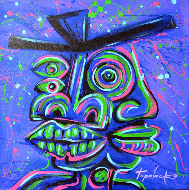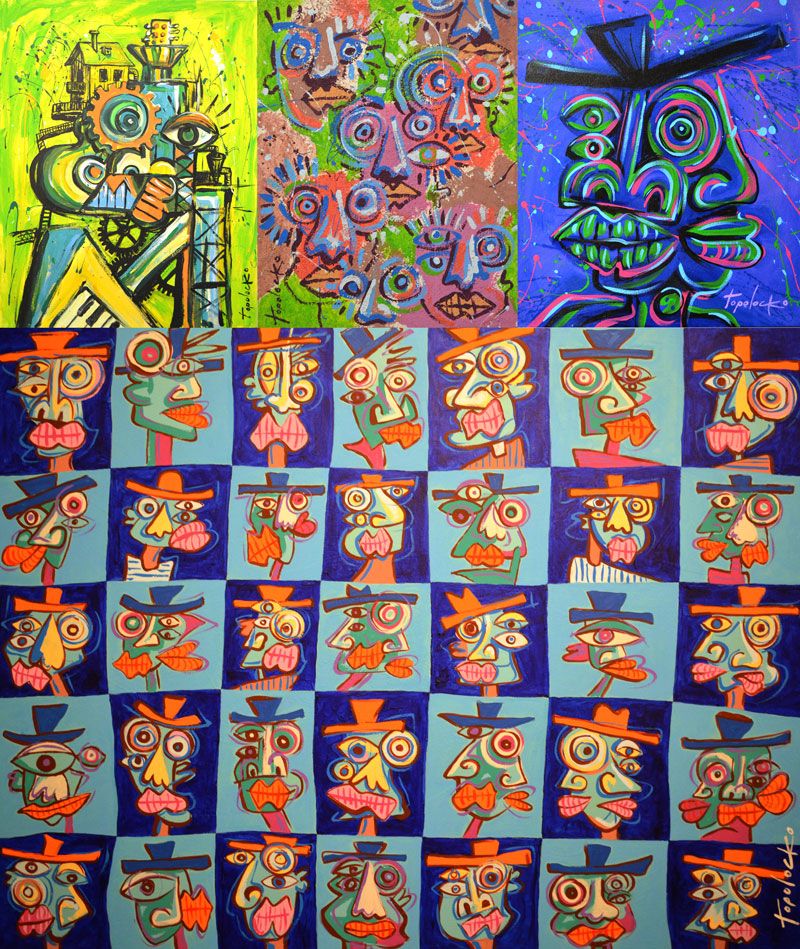 “Topolocko” cuenta con más de 14 exposiciones individuales y colectivas; ha sido catedrático en carreras de diseño y comunicación visual y ha impartido talleres plásticos.