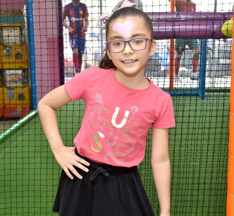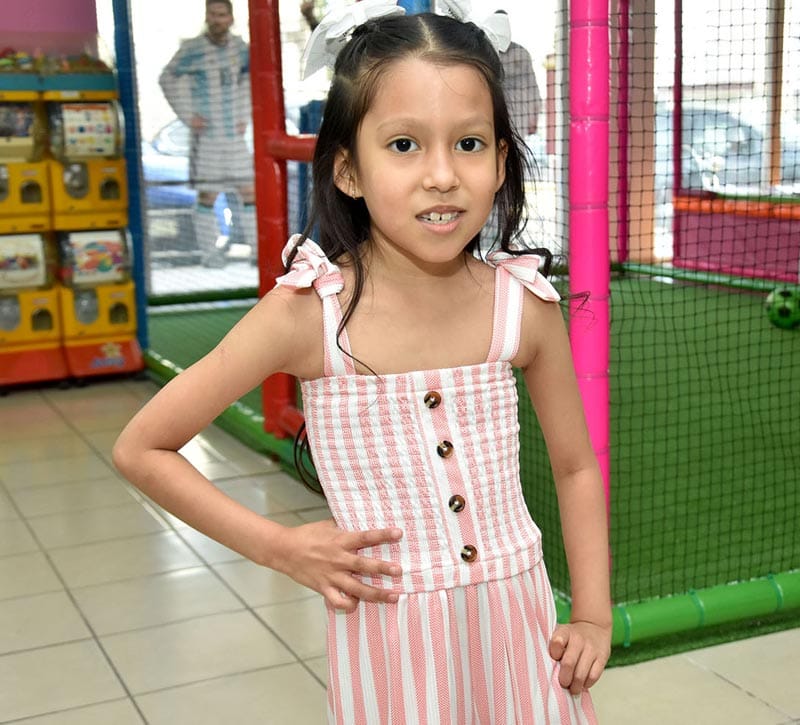 Un hermoso pastel decorado en blanco y rosa lució en la parte superior, figuras de sus personajes favoritos, así como un enorme arreglo de globos decoraron la mesa de regalos, en una reunión donde los invitados le cantaron “Las Mañanitas” a Fabi y, con la ayuda de su hermano apagó la vela número siete.