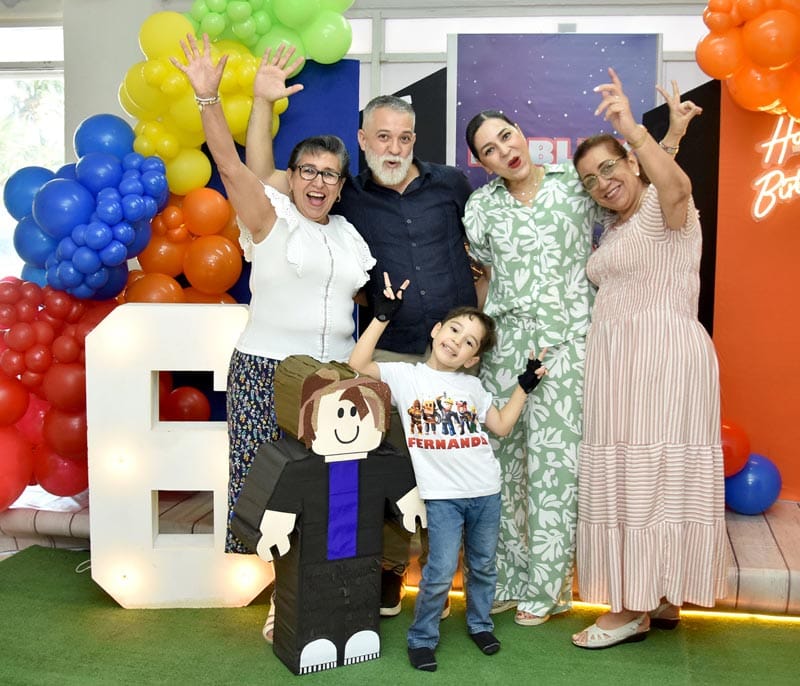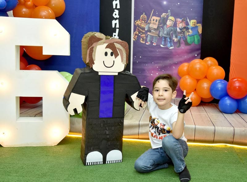 Con una padrísima fiesta inspirada en el mundo de los videojuegos de “Roblox”, fue como el pequeño Fernando Castaño Collinot festejó sus 6 años de vida, sus papis Elsa Collinot Aguilar y Julián Castaño Sánchez fueron los encargados de convocar a sus amiguitos del colegio y familiares.