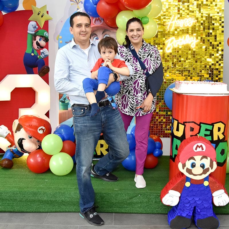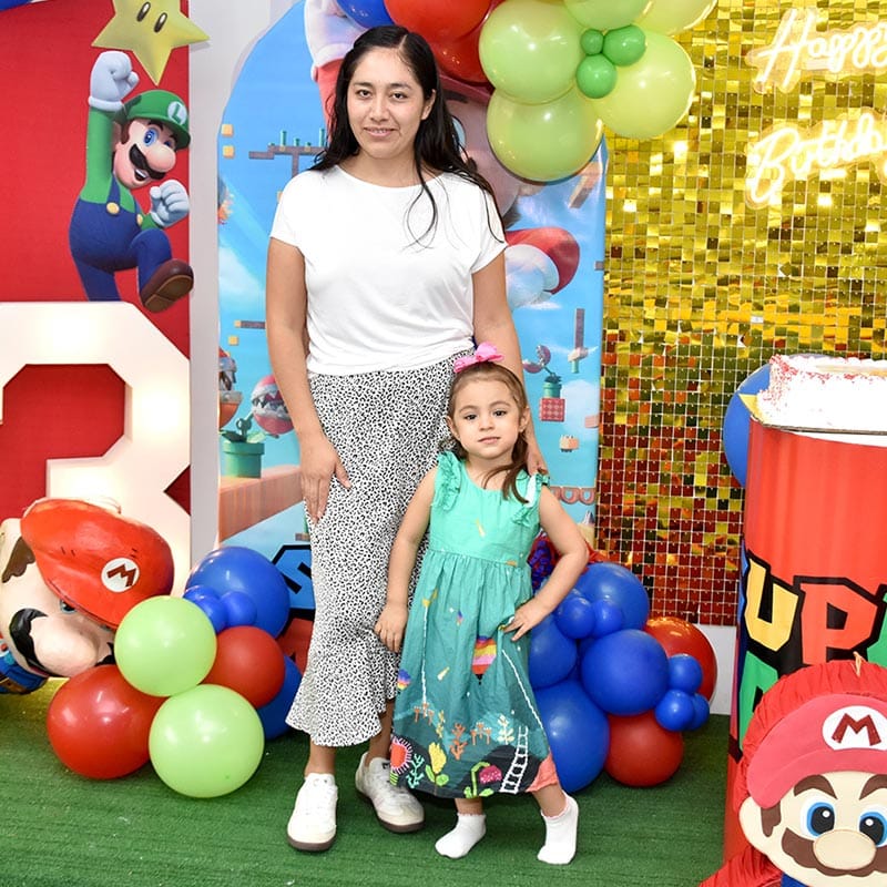 Como sorpresa especial para el festejado y sus invitados llegaron a saludarlos Mario Bros y Luigi con los que cantaron, bailaron y jugaron por un par de horas.
