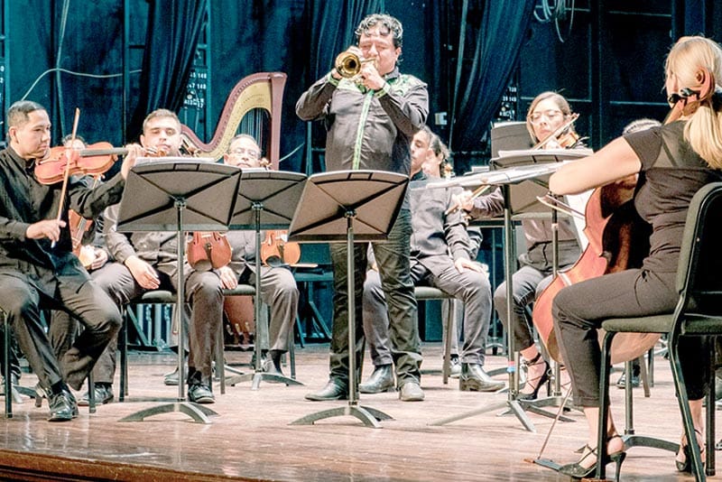 Bajo la batuta de Eduardo García Barrios, como director huésped, la Orquesta Filarmónica de Boca del Río se presentó en el teatro Francisco Javier Clavijero, teniendo como solista a Faustino Díaz, en el trombón.