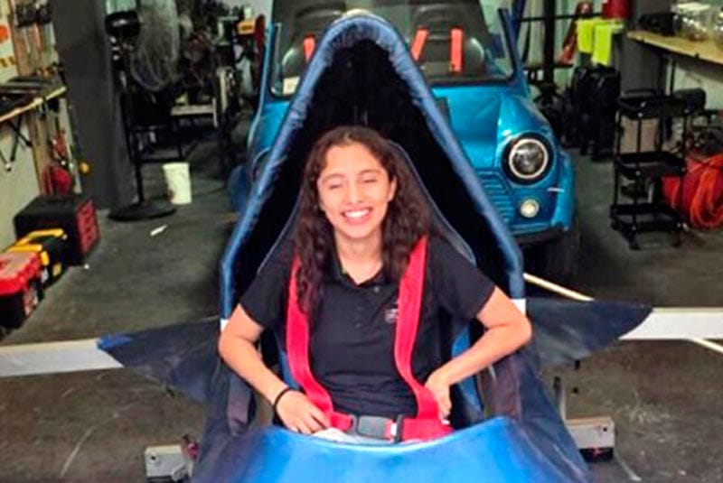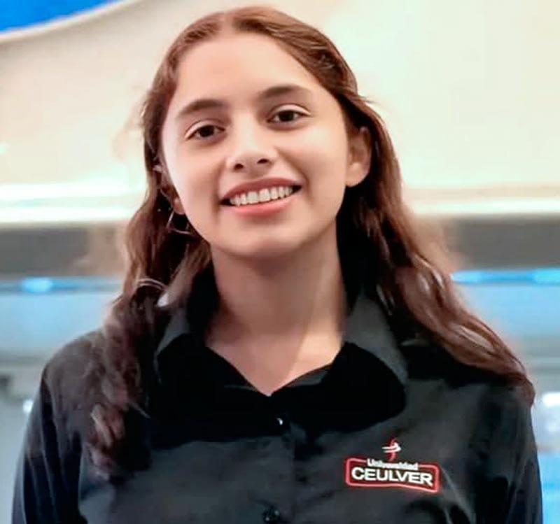 Valeria Palacios Cruz cursa simultáneamente las carreras de Ingeniería Electrónica en el Tecnológico Nacional de México campus Veracruz y la de Ingeniería Mecatrónica en la Universidad Ceulver; es egresada del Conalep Veracruz, donde inició su formación académica.
