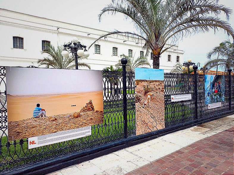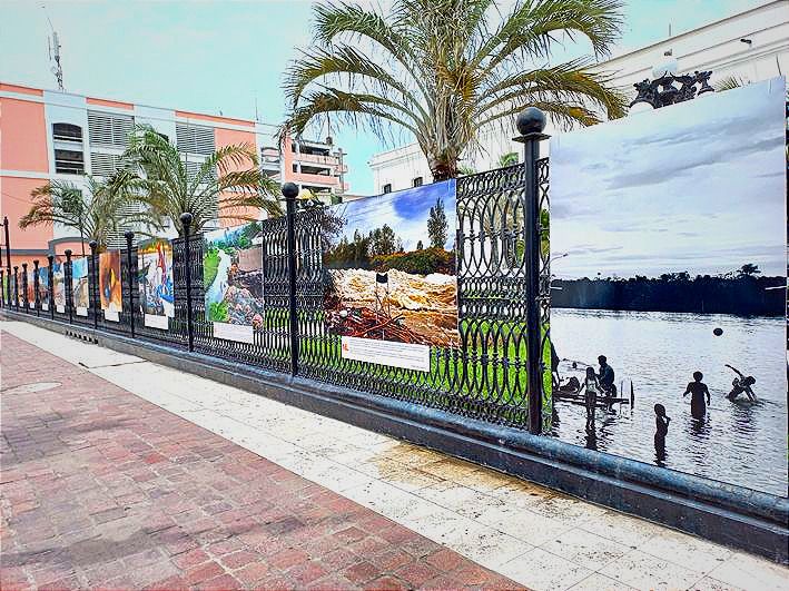 En las rejas que rodean el Museo Naval de Veracruz, por el lado de la calle Landero y Coss, se encuentran expuestas imágenes de gran formato, las cuales presentan la realidad que actualmente vive el mundo con las sequías y el clima extremo que son cada vez más frecuentes, en contraste, el aumento del nivel del mar, así como el uso de desechables.