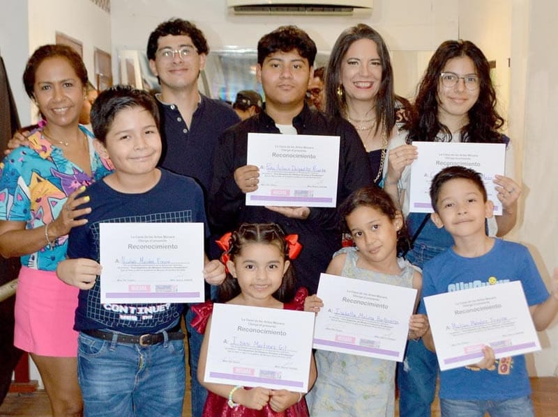Mediante dinámica de pintar un avión sobre la duela del lugar, cada uno de los niños fue pasando por su reconocimiento, que les fue entregado de parte de los organizadores de este evento, donde estuvieron apoyando a estos nuevos talentos sus papás y seres queridos.